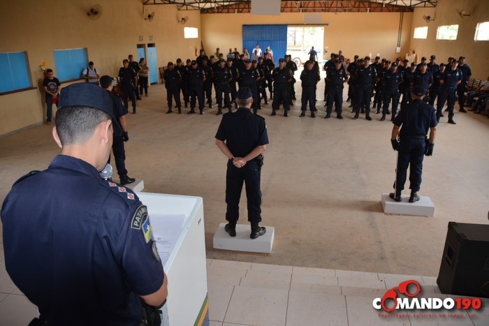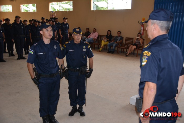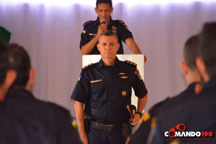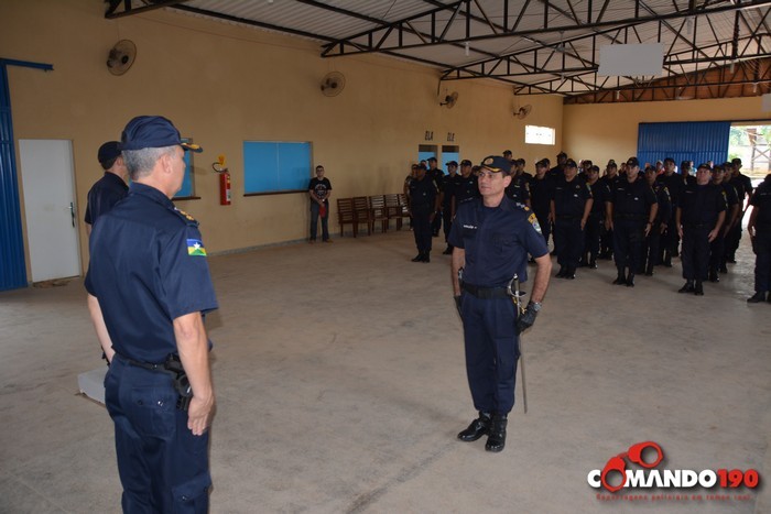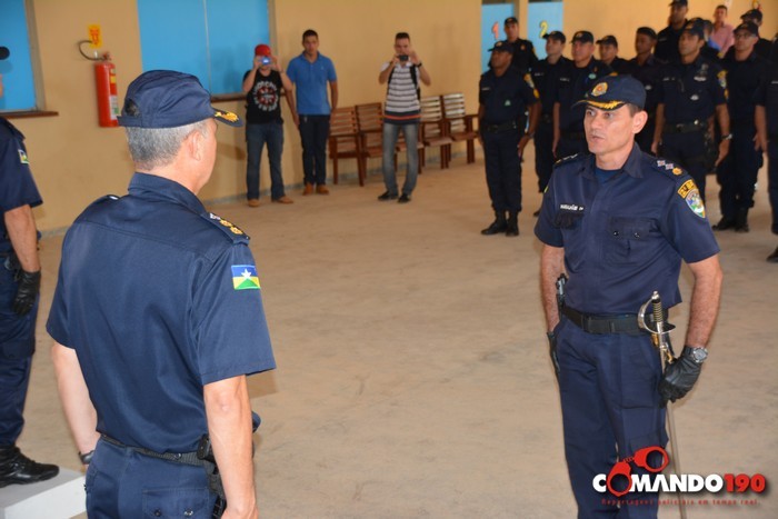 A cerimônia, conduzida pelo Capitão PM Braguin, teve o processual peculiar dos militares com execução e cântico do Hino “Céus de Rondônia”, seguido do posicionamento dos comandantes substituto e substituído e a leitura do Ato Administrativo.
