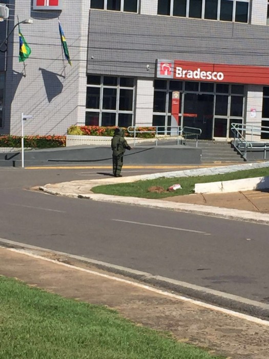 Uma agência bancária foi invadida na madrugada desta quarta-feira (1°) em Ji-Paraná (RO), cidade situada a 370 quilômetros da capital Porto Velho. Durante a invasão, houve a tentativa de arrombar um dos caixas eletrônicos, mas o artefato explosivo de fabricação doméstica não explodiu por completo e foi abandonado pelos suspeitos que fugiram. O Grupo de Ações Táticas Especiais (Gate) de Porto Velho foi acionada e o explosivo foi detonado de forma segura.