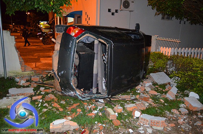 Como o pedido foi novamente negado, o homem passou a seguir os jovens. Durante a perseguição, Anderson Matias acabou perdendo o controle da direção, bateu no meio fio e o veículo capotou, quebrando o muro de uma residência, já na Avenida Maringá com a Rua T-21, no bairro Nova Brasília.