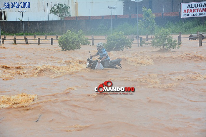 Após 05 horas de uma forte chuva que caiu na manhã desta sexta-feira (15), em Ji-Paraná, vários pontos da cidade ficaram inundados. O igarapé Dois de Abril transbordou e deixou várias famílias desabrigadas.