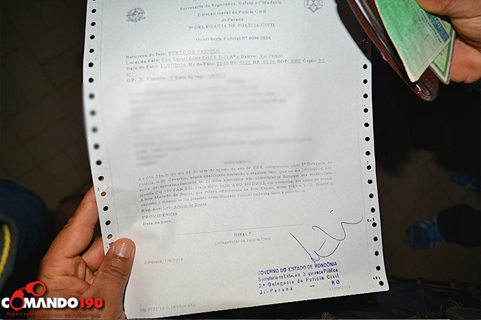 Enquanto os PM’s registravam o BOP, na 2ª DP, um adolescente de 17 anos, apareceu chorando informando que a motocicleta apreendida com os assaltantes era de sua propriedade e que a mesma havia sido furtada, por volta da meia noite.