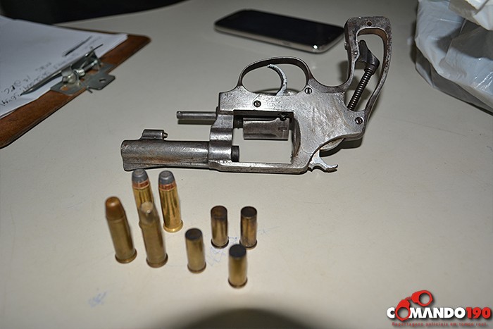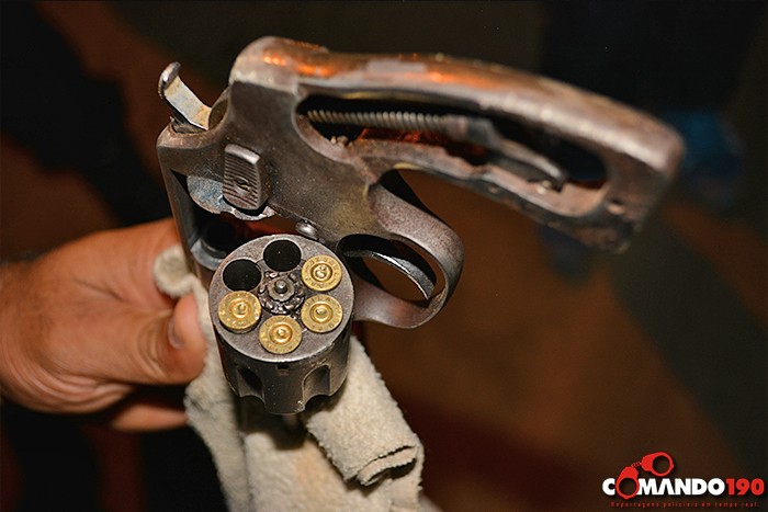 Ao fazer novamente o percurso, os policiais acabaram encontrando o revólver que foi jogado pelo suspeito. A arma estava com quatro munições deflagradas.