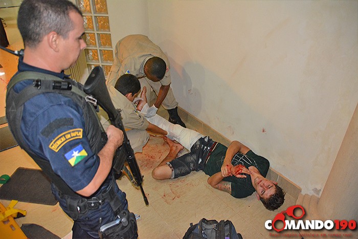 Em seguida, em uma varredura minuciosa pelos cômodos da casa, os policiais se deparou com o outro bandido, também com a arma em punho. Ao receber voz de prisão, ele tentou reagir contra a Polícia, porém levou a pior e foi baleado na perna. Ele foi identificado como André Cardozo Werneck, de 21 anos e foi levado ao HM sem risco de morte. O comparsa foi identificado como Leonardo dos Santos, de 34 anos.