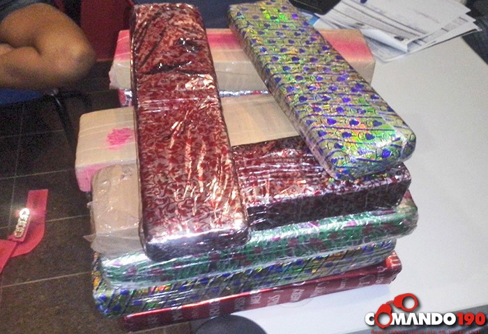 Por volta das 18h00, desta quinta-feira, dia 09, o NOE (Núcleo de Operações Especiais) da PRF, em Ji-Paraná, realizou uma abordagem em um ônibus tinha como itinerário Ji-Paraná/Porto Velho. Durante a revista nas bagagens, os policiais encontraram uma mala contendo cerca de 12 quilos de Maconha, curiosamente embalados com papel de presente.