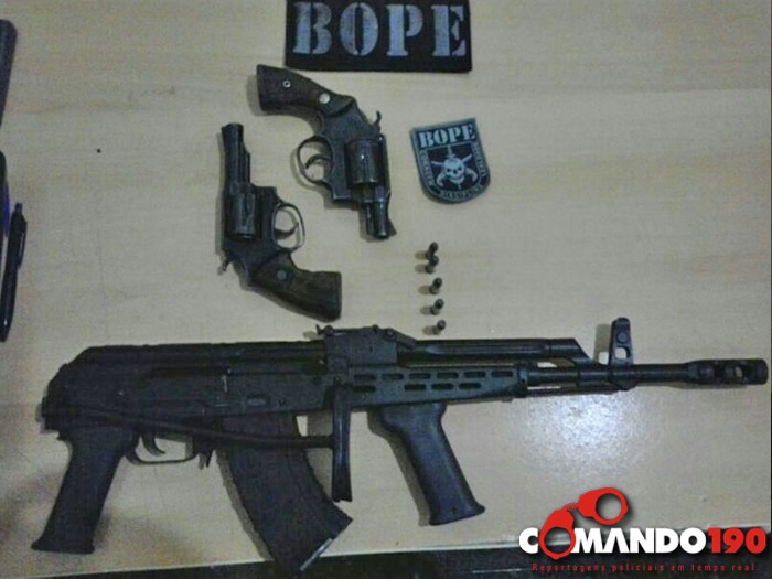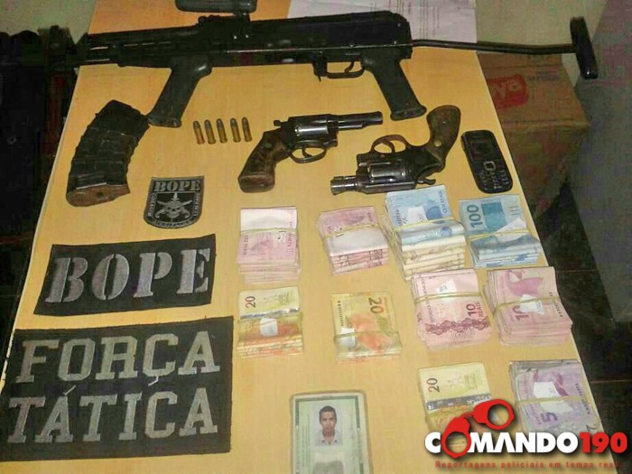 Policiais do Batalhão de Operações Policiais Especiais (BOPE) apreenderam, com os criminosos mortos e preso, quase R$ 30 mil em espécie, uma pistola .45, dois revólveres 38 e um fuzil AK 47. "O importante é a bandidagem saber que a polícia não vai aceitar esse tipo crime [neste caso o assalto à cooperativa]", ressaltou o policial.