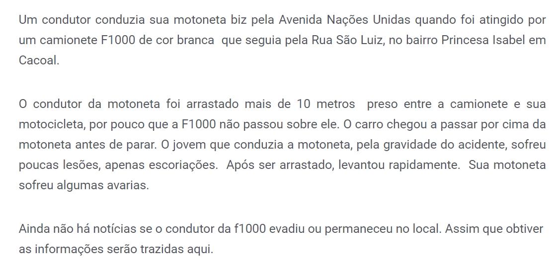 Fonte: Alerta Cacoal - Em ACIDENTES - 30/08/2021 14:54:00