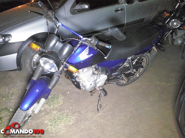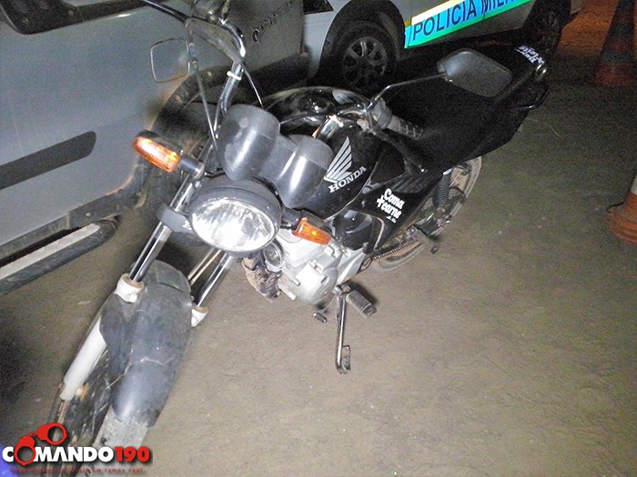 Por volta das 22h30, desta quarta-feira, dia 16, a Guarnição de Rádio Patrulha composta pelo CB PM Bernardo, SD PM Lima e SD PM Pissinati, realizava patrulhamento de rotina pela Rua Cacau, no bairro Aeroporto 02, no município de Ouro Preto do Oeste, quando se deparou com dois indivíduos trafegando em uma motocicleta Honda Titan, de placa NDM-5084, em atitude suspeita. Ao dar ordem de parada, o piloto empreendeu fuga, quase atropelando um policial militar, porém não conseguiram ir muito longe e foram abordados há alguns metros a frente.