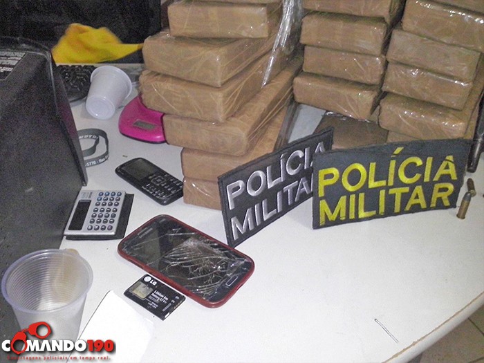 Dentro da casa, os policiais encontraram 31 tabletes de Maconha, pesando cerca de 31 quilos e 100 gramas de Crack. No local, também foram apreendidos uma espingarda de pressão adaptada para receber calibre 22, uma motocicleta Honda Titan, de placa NCW-0121 e uma balança de precisão usada para pesar a droga.