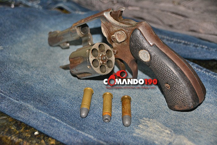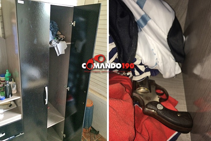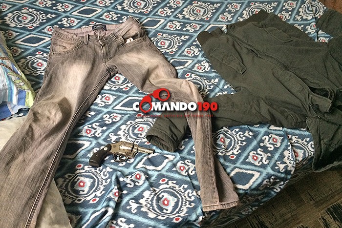 Depois, continuando com as diligências, a equipe chegou até a casa de um suspeito, no bairro JK. Ele não estava em casa, mas em seu guarda-roupas, os policiais encontraram um revólver calibre 38, com três munições intactas. A arma e algumas peças de roupas foram reconhecidas pelas vítimas.