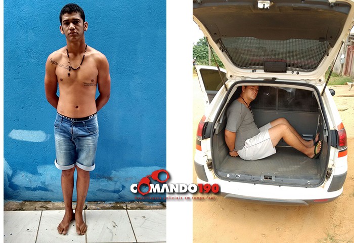 Os suspeitos, Lucas de Souza Santos, de 19 anos e Paulo Henrique dos Santos Souza, de 21 anos, foram presos em casa, na Rua T-12, no bairro Val Paraíso. Nesta casa, os policiais encontraram a motocicleta XRE, de cor preta, placa NCA-4591, utilizada na maioria dos assaltos, uma pistola inoxidada calibre 380, municiada, vários celulares roubados, dinheiro e diversos pertences pessoais de vítimas.