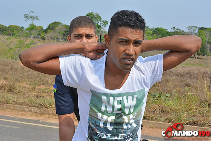 Na manhã desta quarta-feira (27), a Guarnição de Rádio Patrulha comandada pelo CB PM Jamis, auxiliado pelo SD PM Maciel e SD PM Passareli, se deparou com o suspeito em fuga, no Travessão da Estrada do Aeroporto com a Linha 128. Sem ter como fugir, o suspeito se rendeu.