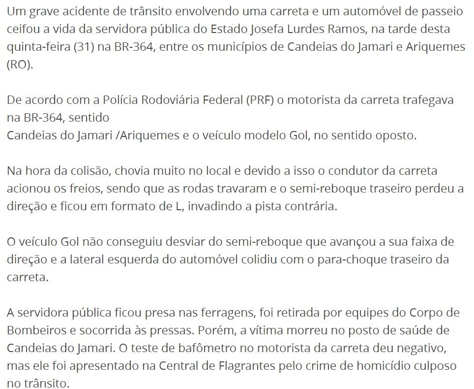 Fonte: rondoniaovivo - Em ACIDENTES - 31/10/2019 21:05:00